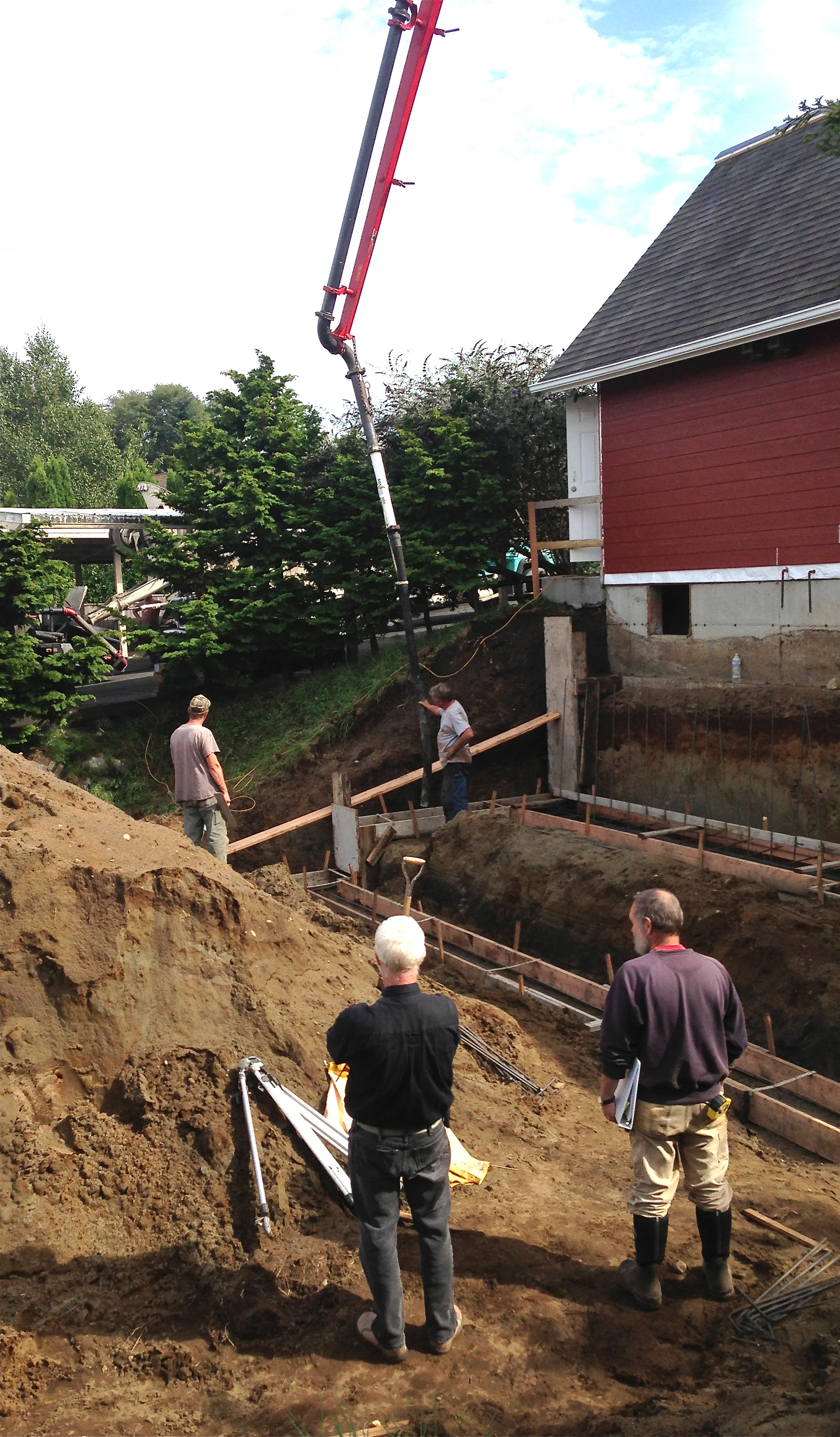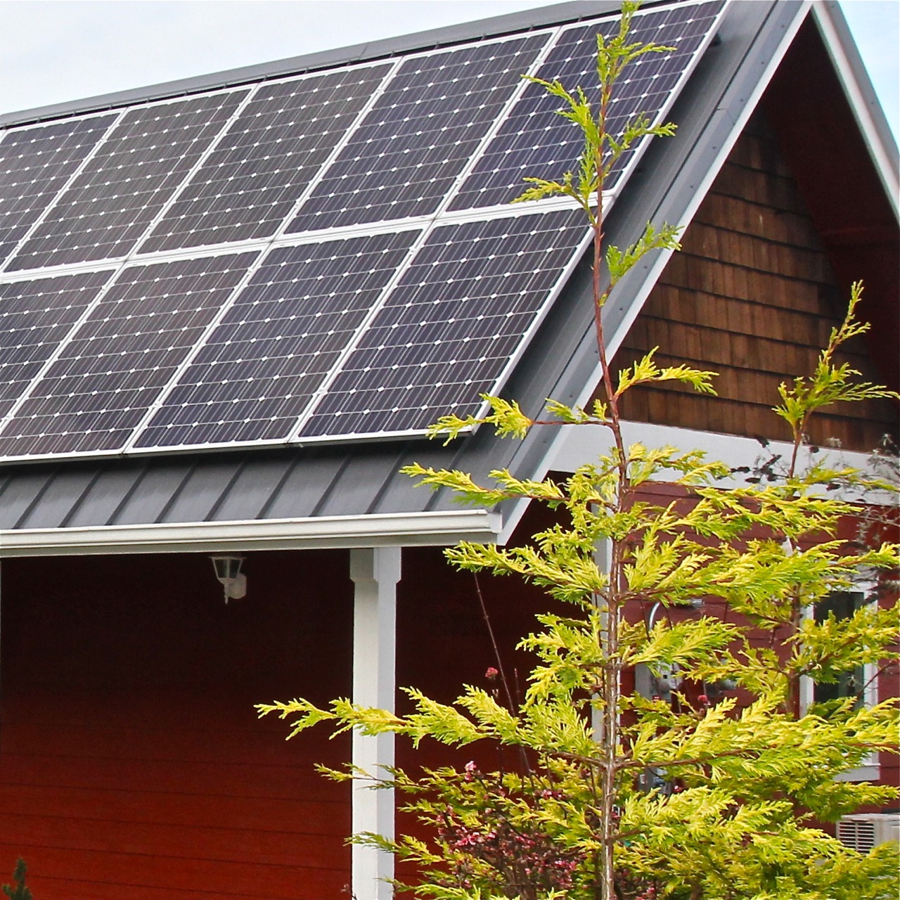 We are committed to making choices for the building with long range life cycle and energy use in mind. One of the first choices has been to replace its short-life shingle roofing with metal roofing and install a 6.4kW photovoltaic solar array. This system, installed by Whidbey Sun & Wind, now runs the electric meter backwards on sunny days. The new addition has R60 insulation in the ceiling and R30 in the walls (code requirements = R38/19), a mini-split heat pump heater, and the most energy-efficient water heater on the market.
